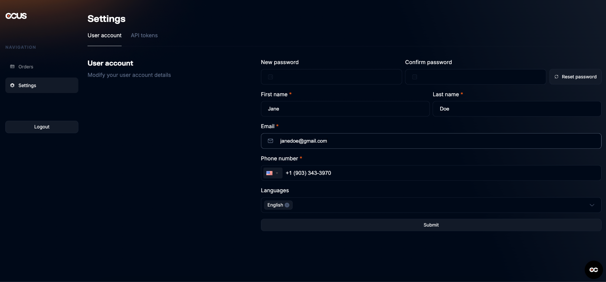 - Phone number