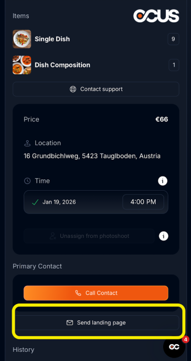 Send the landing page as early as possible, ideally after your first call or exchange with the restaurant. This gives them a clear reference point for all photoshoot information and helps ensure alignment from the start.