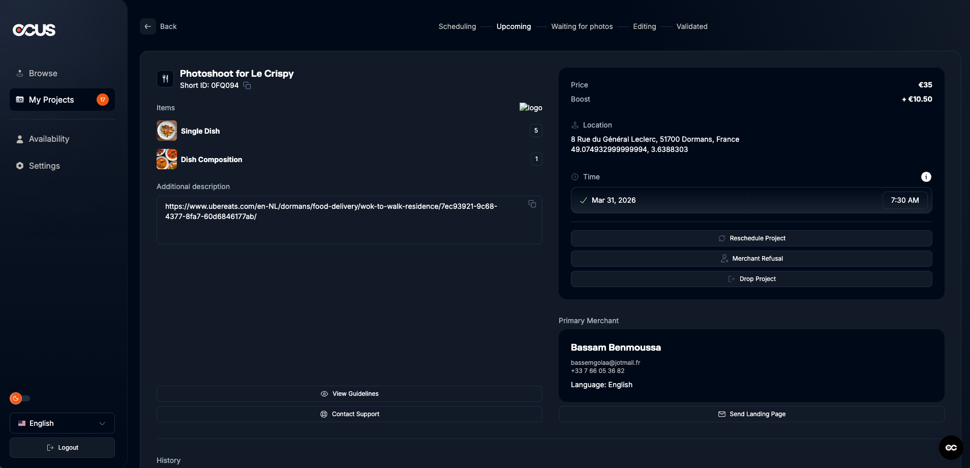 - You cannot reschedule a Project without having agreed on a new date with the Merchant beforehand