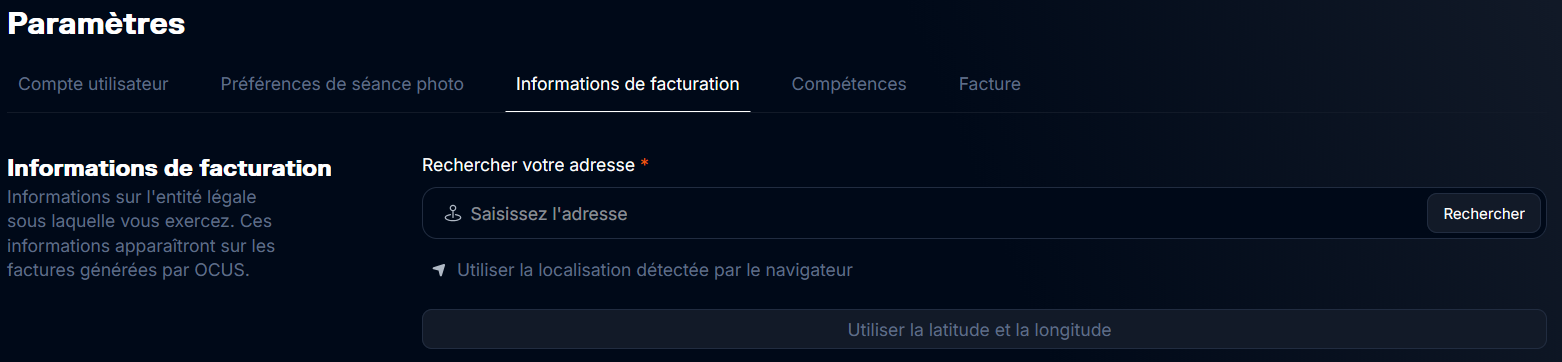 En tant qu'auto-entrepreneur, votre statut légal et vos informations peuvent évoluer au fil des années. Afin de refléter ces changements, votre compte vous permet de mettre à jour directement vos informations de facturation.